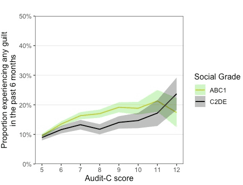 People drinking at the highest levels were more than twice as likely to report guilt compared with those at the lower end of the increasing-risk range. This is particularly concerning as people who drink more are the most likely to benefit from treatment and may not seek it if they feel guilty and remorseful. How we tackle this, especially among a backdrop of financial cuts to services, is a point for more discussion.