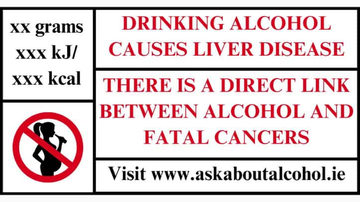 Given the extent of alcohol-related harm across the European Union, member states are increasingly considering warning labels on alcohol products to inform the public of the risks associated with drinking. Ireland has led the way, enacting the Public Health (Alcohol) Act 2018, which provided for the introduction of health warning labels on alcohol products sold in the country and look like this: