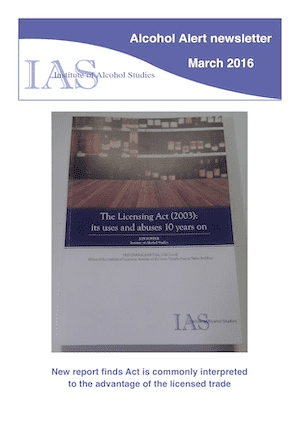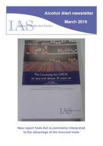 Welcome to the March 2016 edition of Alcohol Alert, the Institute of Alcohol Studies newsletter, covering the latest updates on UK alcohol policy matters.