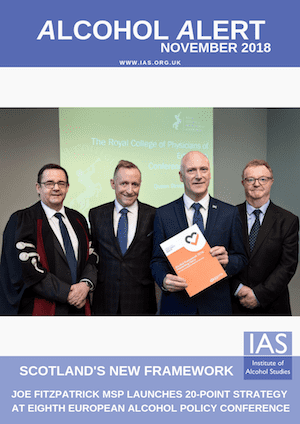 Welcome to the November 2018 edition of Alcohol Alert, the Institute of Alcohol Studies newsletter, covering the latest updates on UK alcohol policy matters.