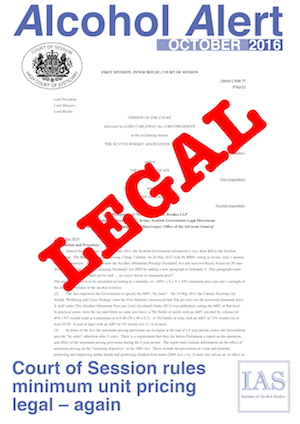 The Court of Session has ruled for the second time that the Alcohol (Minimum Pricing) (Scotland) Act is lawful, after judges declared that it is justified to protect public health. It follows a ruling by the European Court of Justice (ECJ) made in December 2015, which held that minimum unit pricing (MUP) may breach EU free trade legislation.