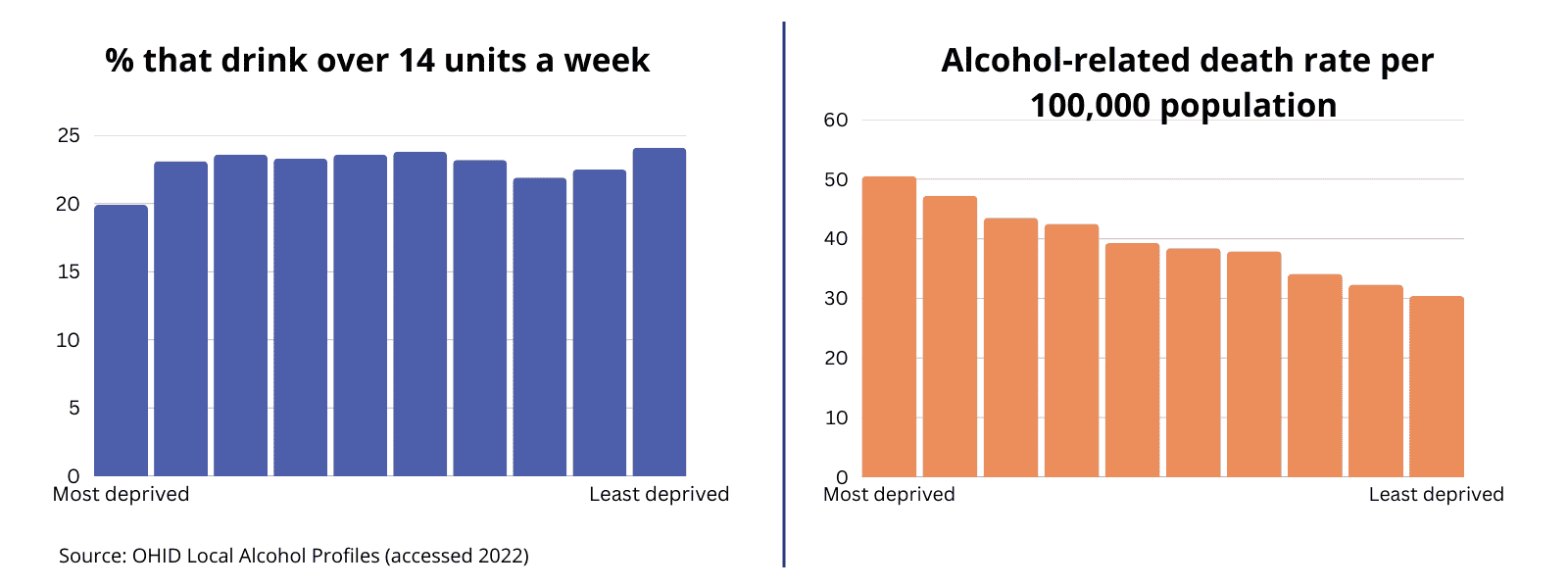 - Incidence rates for alcohol-related domestic violence among the most disadvantaged groups were up to 14 times higher compared with the least disadvantaged (IAS, 2020)