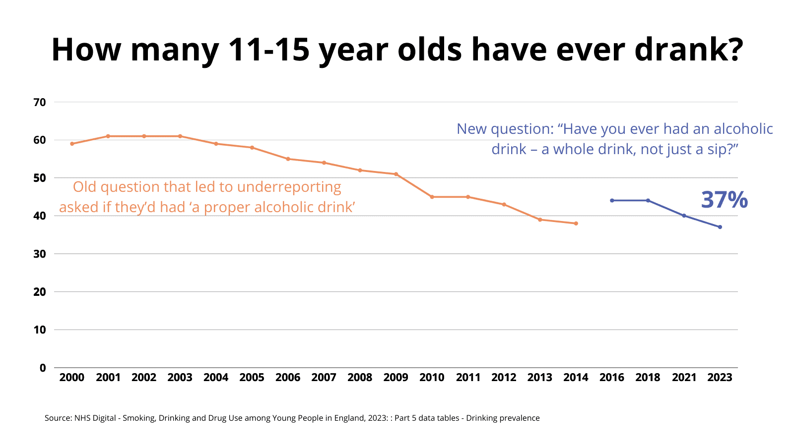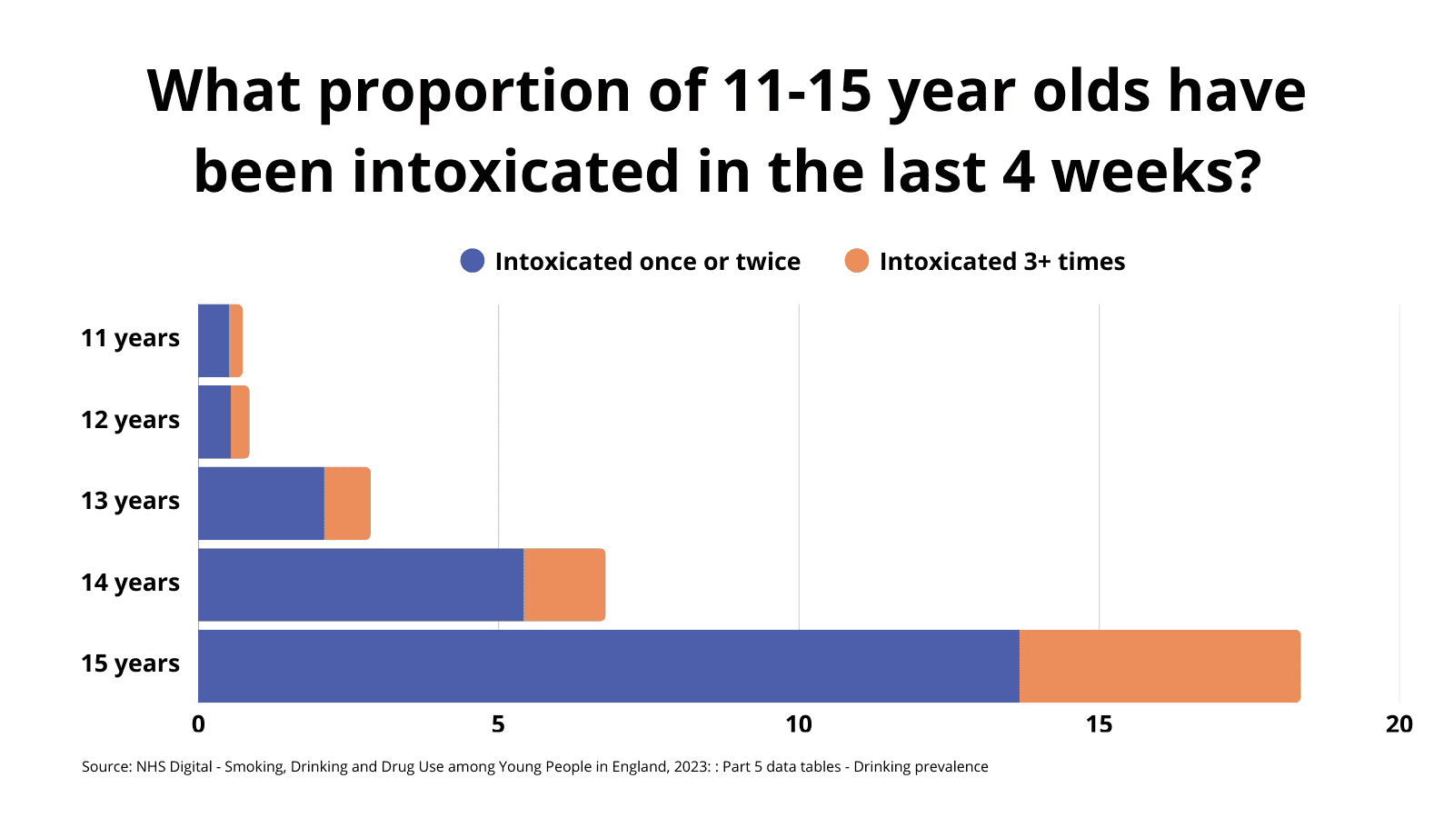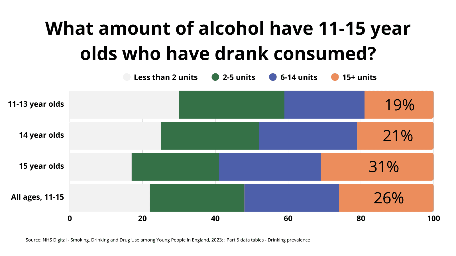 - England: 37% of 11-15-year-olds have ever had a drink in 2023