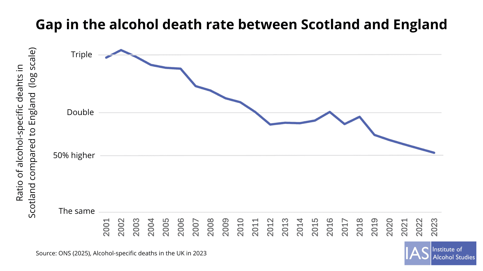 Ratio of Scot:Eng death rate – log scale by The Institute of Alcohol Studies