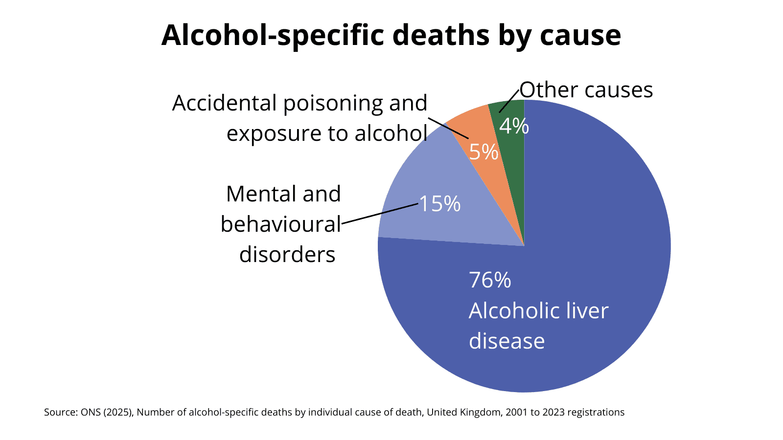 - Alcoholic liver disease accounts for over three quarters of alcohol-specific deaths in the UK