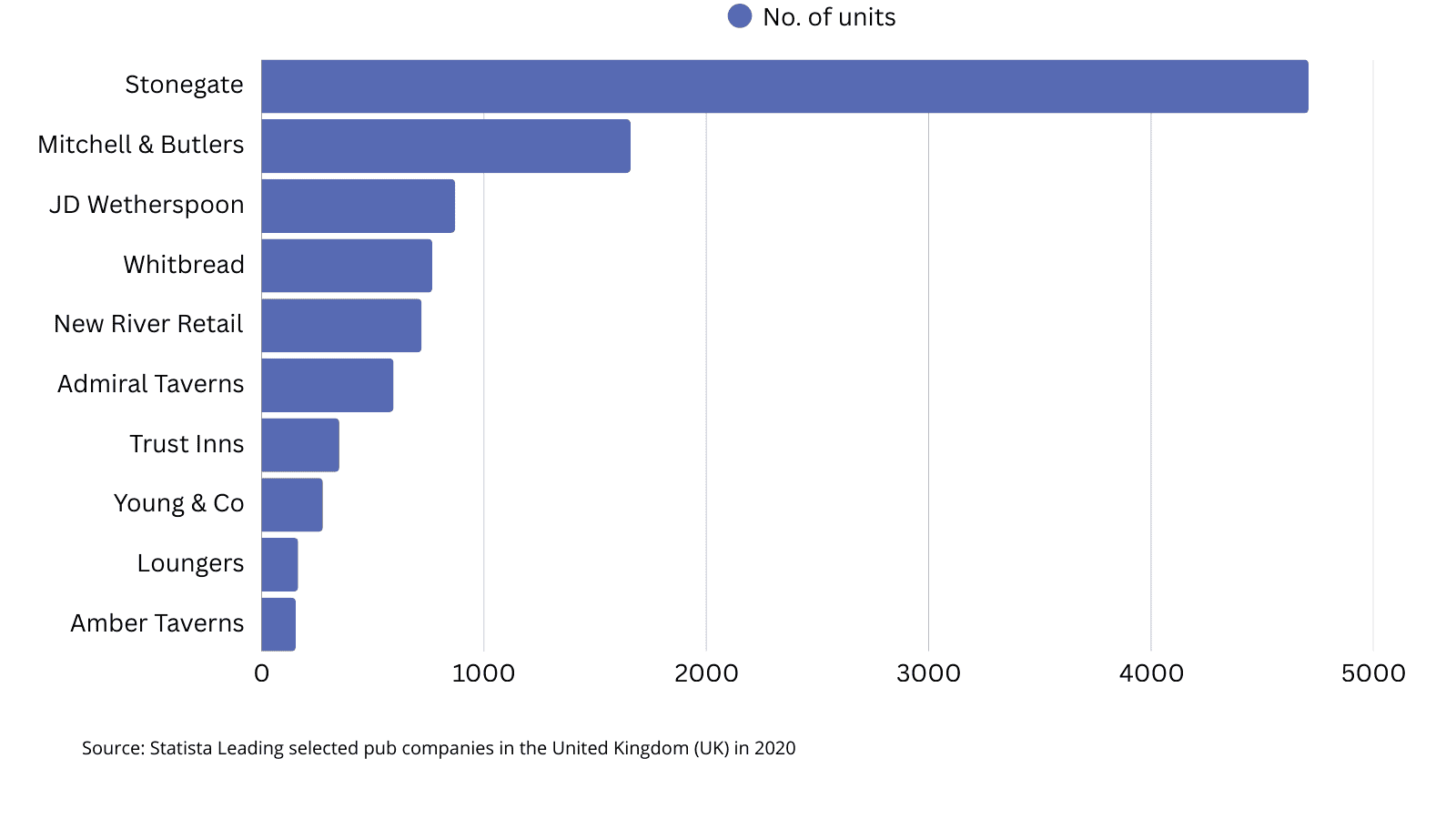 - In 2022, there were 158,000 licensed on-trade premises, including pubs and bars. The largest UK pub operators are: