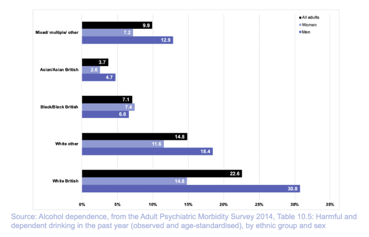 5. Gov.uk Ethnicity Facts and Figures Service. Harmful and probable dependent drinking in adults. 2019.