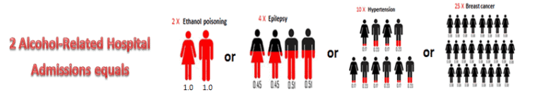 - Alcohol-related hospital admissions are based on a methodology which uses indicators for alcohol-related illnesses* to determine what proportion of cases of a health condition are alcohol-related, known as alcohol-attributable fractions