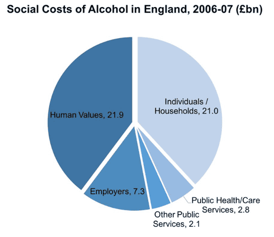 Previously, the most widely cited number was £21 billion, which was for England and Wales. This number has its roots in a 2003 Cabinet Office Strategy Unit report which surveyed the evidence on the cost of alcohol to society.[ii]
