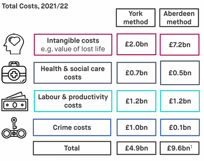 - £5.0 billion costs to other public services, such as social care, criminal justice and fire services